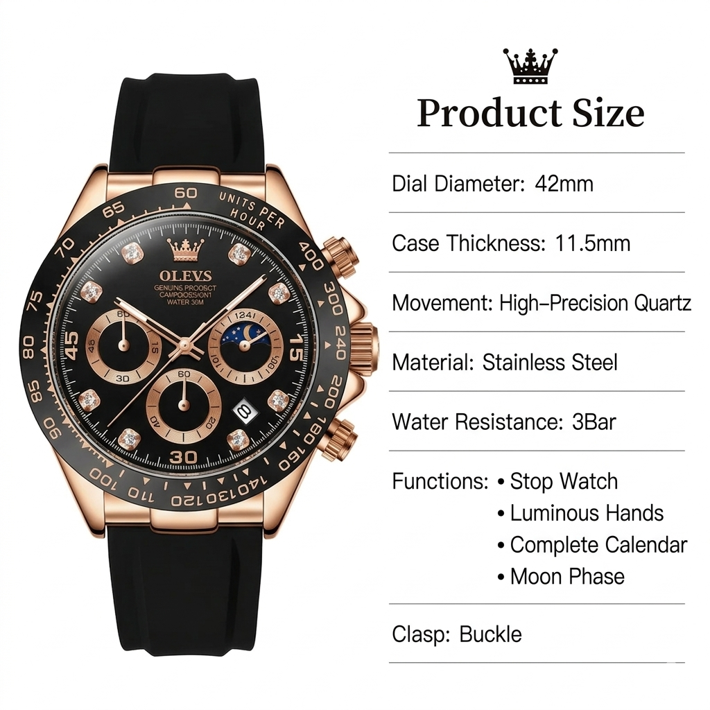 Crafted with carefully selected materials to ensure durability and everyday reliability. Each timepiece is designed to maintain its appearance and performance over time, combining solid construction with attention to detail.